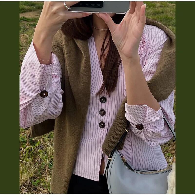 送料無料 e Frauen 3D Blumen Blusen Mode V-ausschnitt Langarm einreiher Lose Hemd 2025、Frühling Weibliche Pendeln kausalen トップス AE6776727035211805