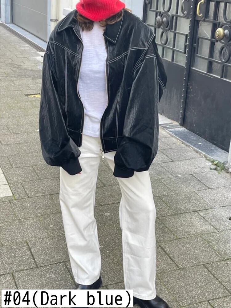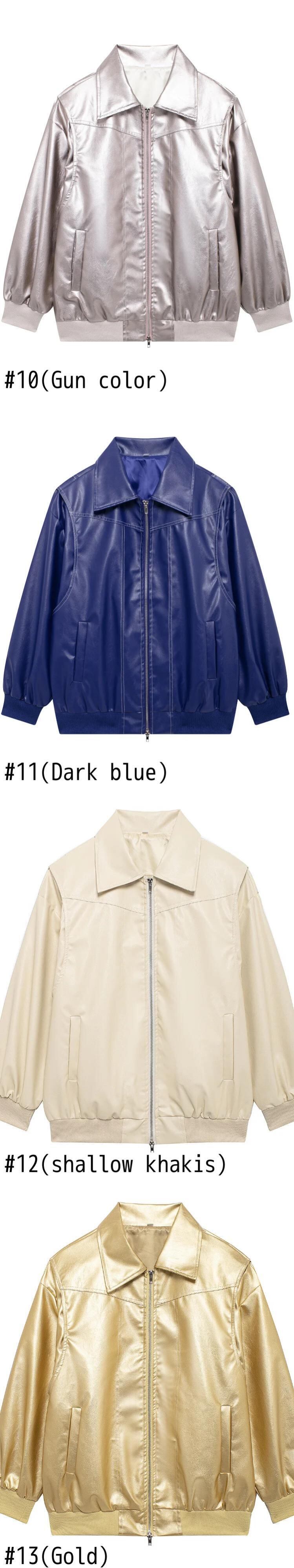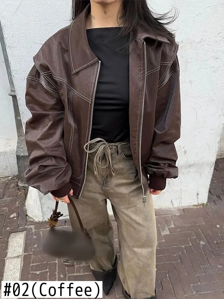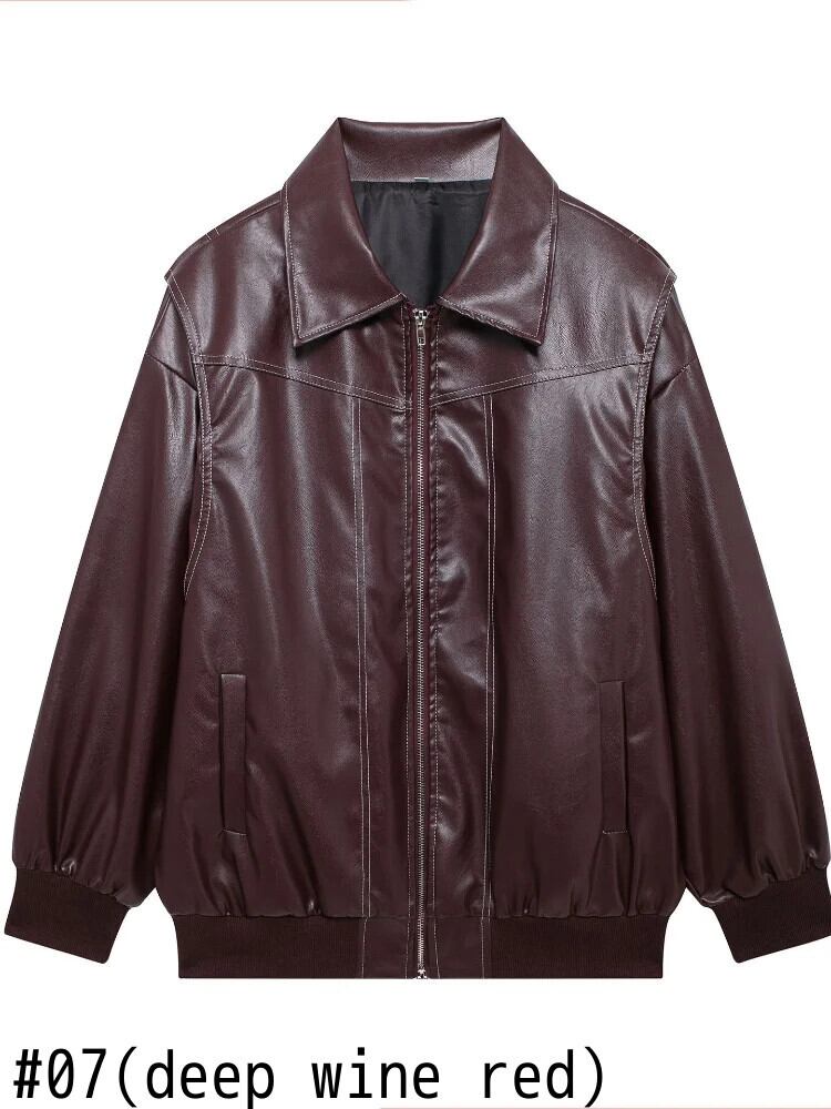 送料無料 Solid Frauen Revers Pu Leder Jacken Chic Neue Lange Hülse Tasche Zipper Lose Mäntel 2025、Frühling Weibliche Street Mantel ストリート ソリッドカラー AE6776755732132492