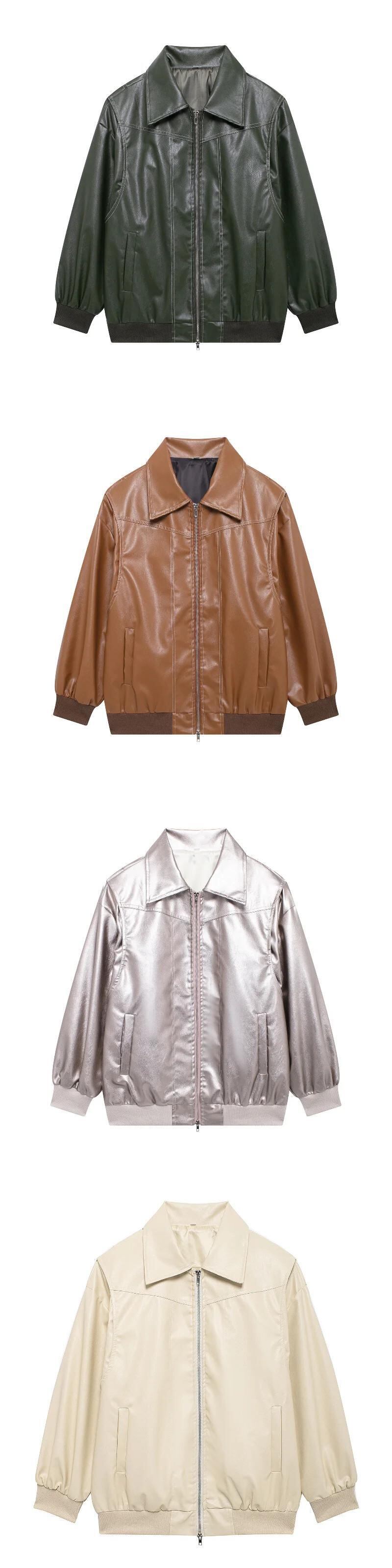 送料無料 Solid Frauen Revers Pu Leder Jacken Chic Neue Lange Hülse Tasche Zipper Lose Mäntel 2025、Frühling Weibliche Street Mantel ストリート ソリッドカラー AE6776755732132492 | 女性の為の通販サイト-fashion navi