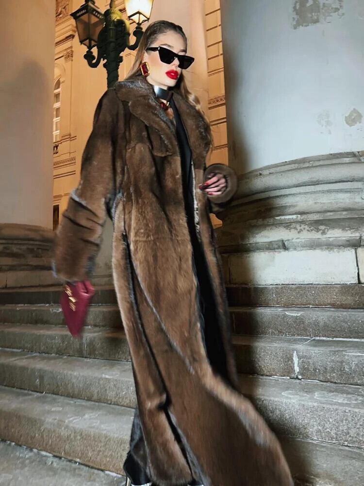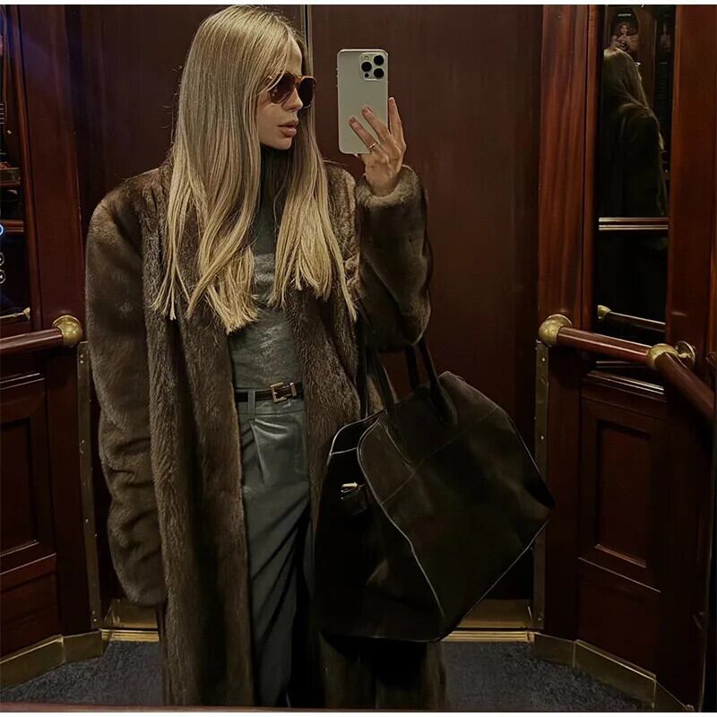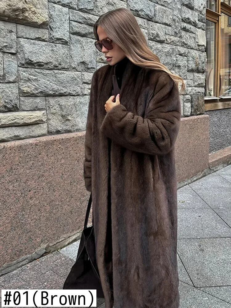 送料無料 Damen Luxus ソフト厚みのある暖かい毛深いフェイクフォックスペルツマンテルモード Übergroße Braune Langarm Flauschige Jacke 2024 レディストリートウェア ファー AE6776776660078366