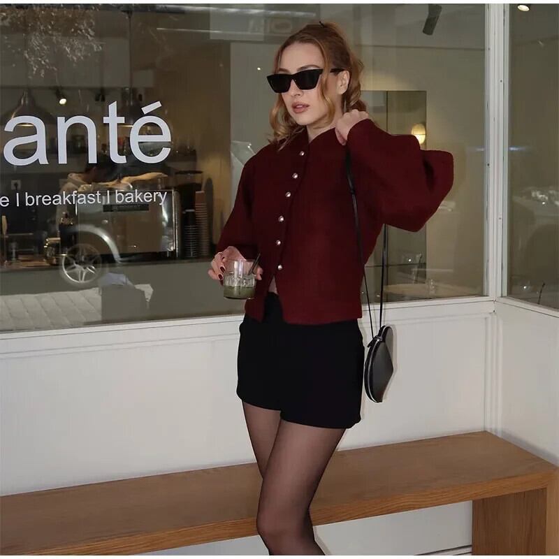 送料無料 e Frauen Solide Woolen Mäntel Mode V-ausschnitt Mit Langen Ärmeln einreiher Lose Kurze Jacke 2025, Frühling Weibliche pendeln Mantel ソリッドカラー AE6776756973721503