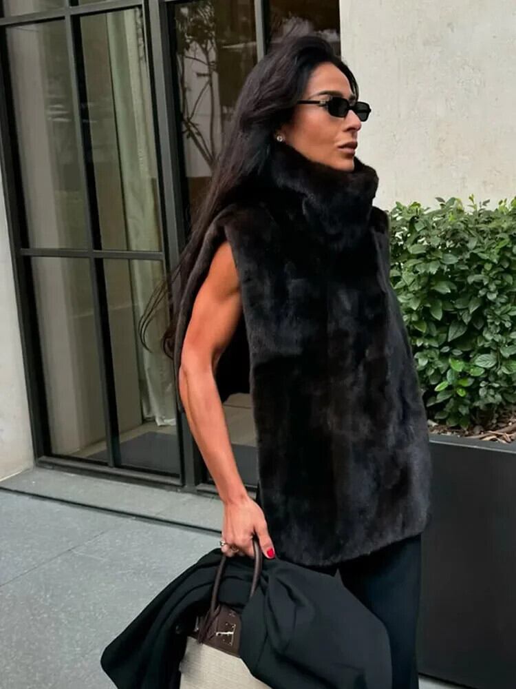 送料無料 Mode frauen Rollkragen Pelzigen Pelz Ärmelose Weste e Solide Verdicken Warme Kurze Weste 2024 Dame Winter Straße アウター ウィンター 冬物 ソリッドカラー AE6776785936239760