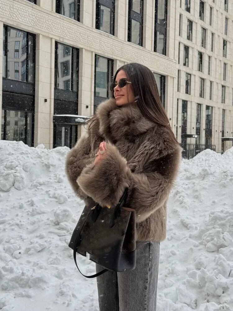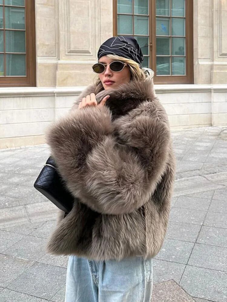 送料無料 Mode Frauen Kunst pelz Jacke flauschig Warm Langarm Revers weiblich kurz geschnittenen Mantel 2024 Winter Solide Dame Straße Oberbekleidung ウィンター 冬物 ソリッドカラー AE6776756681869440