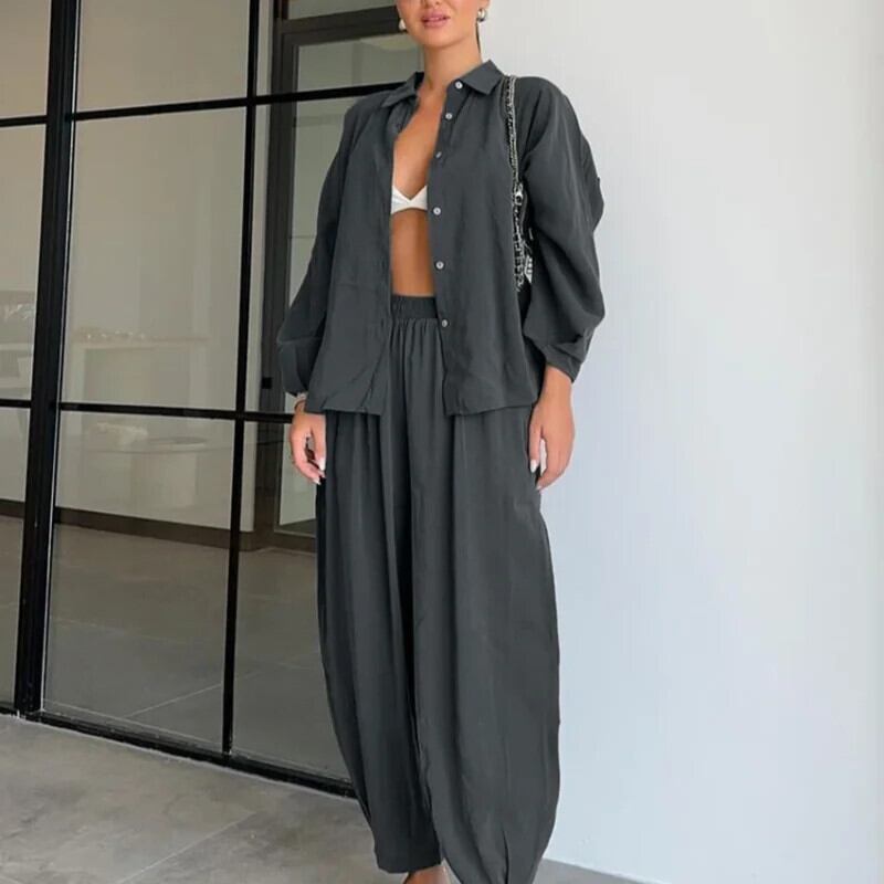 送料無料 Frauen Mode Lose Weiß 2 Stück Sets 2025 Neue Hosen 衣装 Langarm Bluse Mit Wilden Bein Hosen Anzug dame ストリートウェア AE6776787785698716