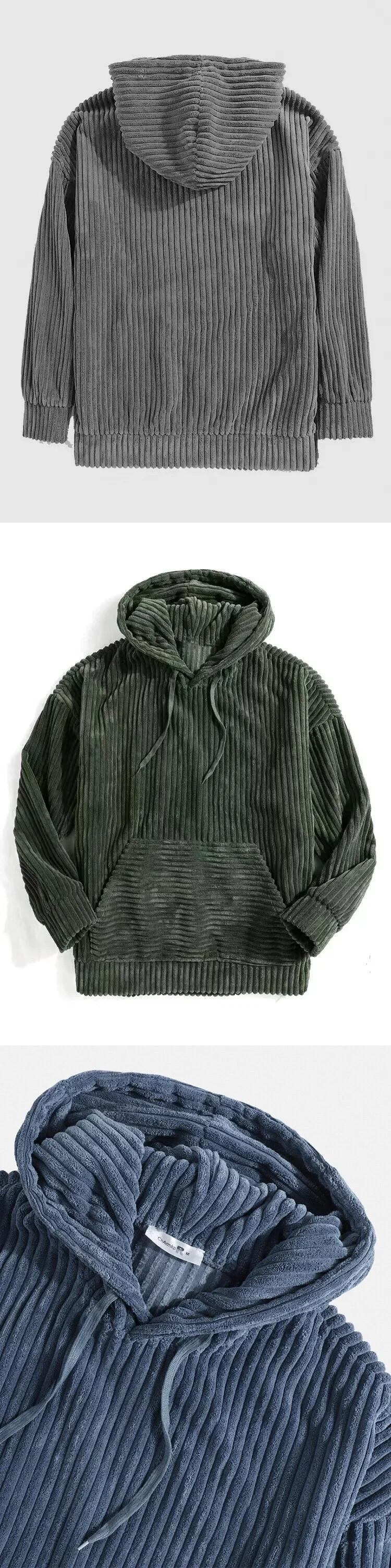 送料無料 Damen gestricktes Cord-Kapuzen-Sweatshirt、Känguru-Taschen-Schulter-Hoodie、dicke lange Ärmel、einfarbig AE66566627510480146