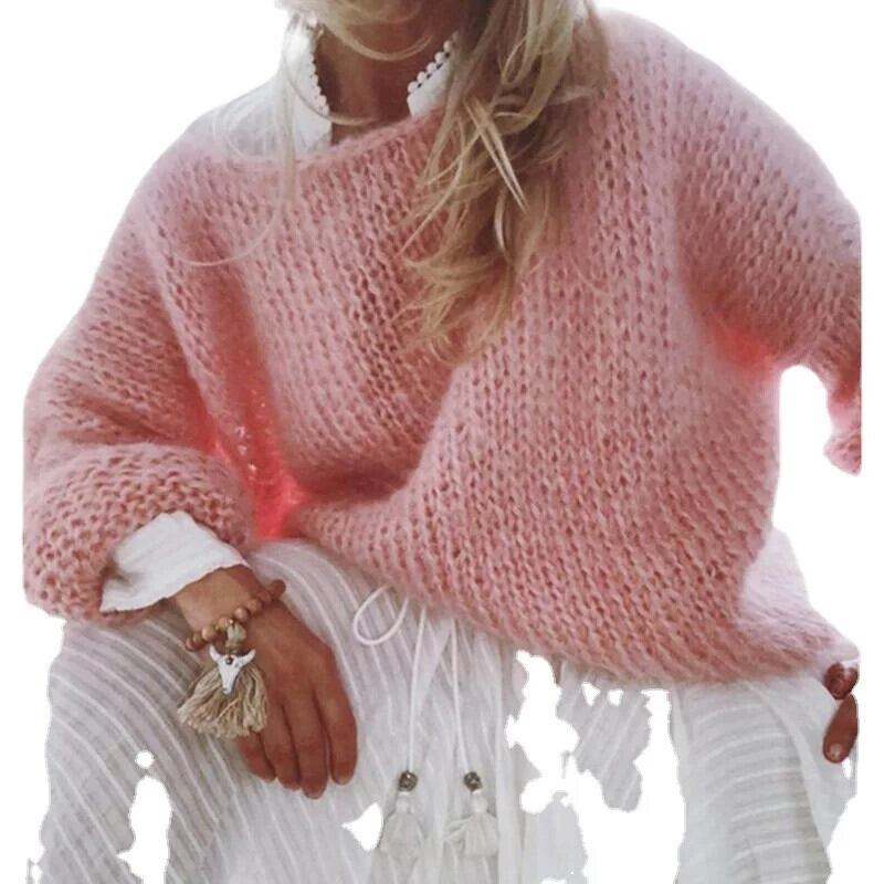 送料無料 アモイ モヘア セーター Damen europäischen und americanischen Frühling und Herbst Tops lässig gestrickt übergroß AE66566634949949136