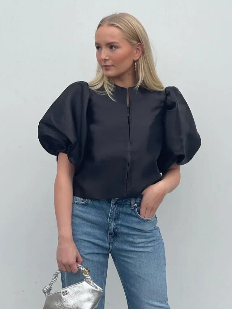 送料無料 2025 frühling Sommer O Hals Einfarbig Satin e Frau Top Mode Kurze Blase Hülse Lose Hemd Neue Dame ストリートウェア サテン AE6677600887088469666063 | 女性の為の通販サイト-fashion navi