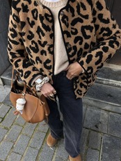 送料無料 ランゲ アルメルン ヒョウ柄フラウエン ペルツマンテル レトロ Kontrast Farbe ジッパー Tasche Jacken Neue Chic Street メンテル ストリート AE6677600887098131563923