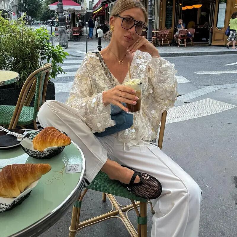送料無料 Glänzende グリッター V-ausschnitt レースアップ フラウエン トップ e Einfarbig Damen Hemd Mode Lange Ärmel ストリート パーティー トップス AE66776008870494274952