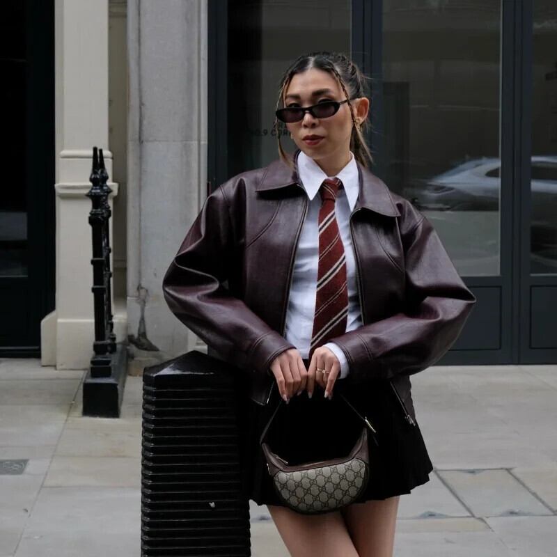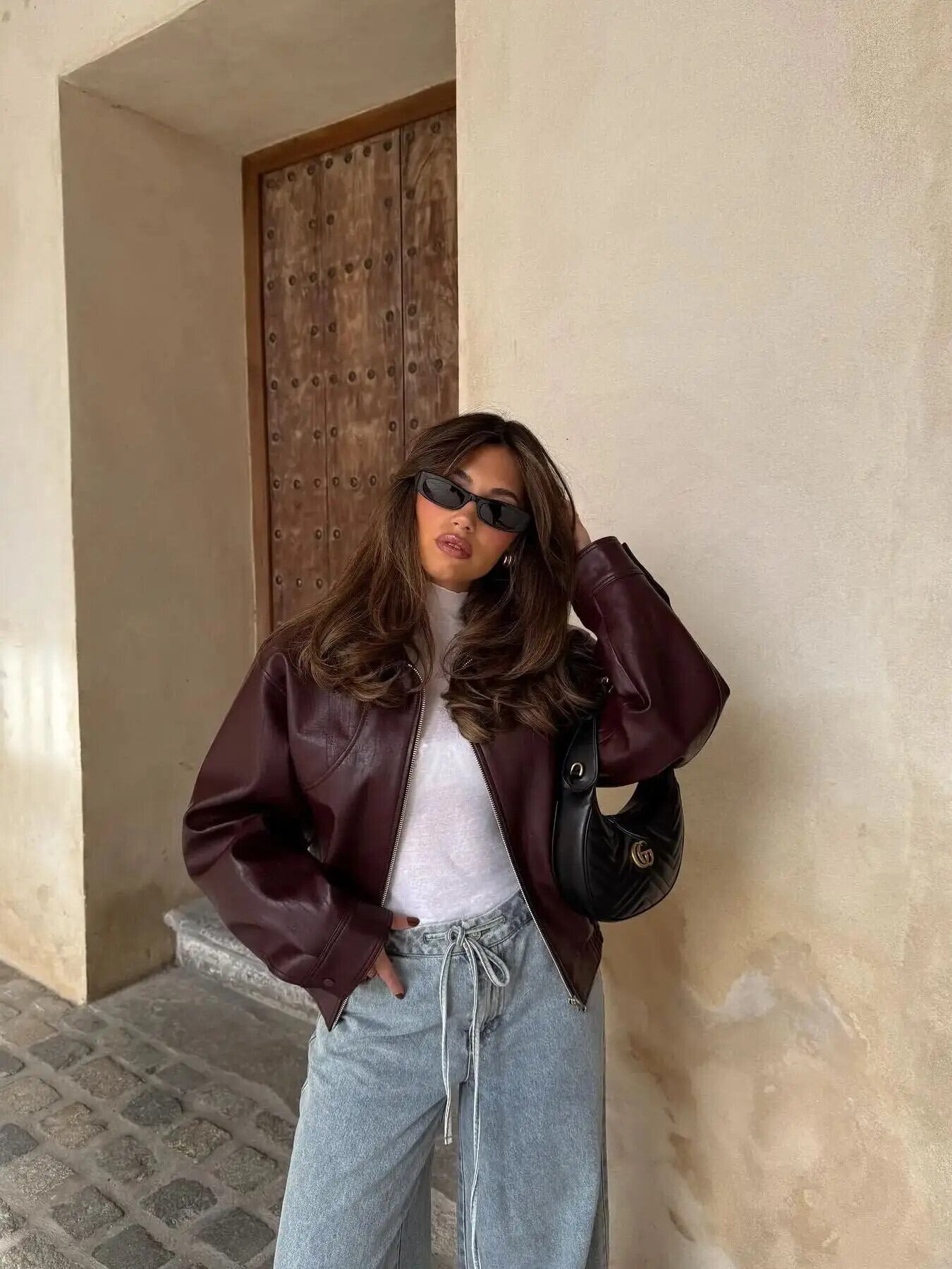 送料無料 ヴィンテージ エラスティック ローテ Revers Reiß verschluss Pu Lederjacken lässig lang ärmel ige Frauen kurze Mäntel Herbst pendeln Straße Oberbekleidung ビンテージ AE6677600887073325880768