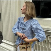 送料無料 シックなチェック柄 Aushöhlen Bogen Spitze Up Top Für Frauen e Rundhals パフ スリーブ Rüschen Kurze Bluse Neue Dame Straße ヘムド AE6677600887035226433265 | 女性の為の通販サイト-fashion navi