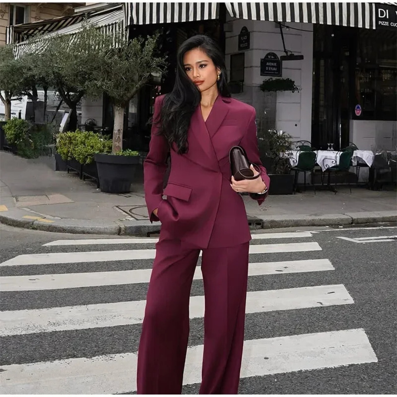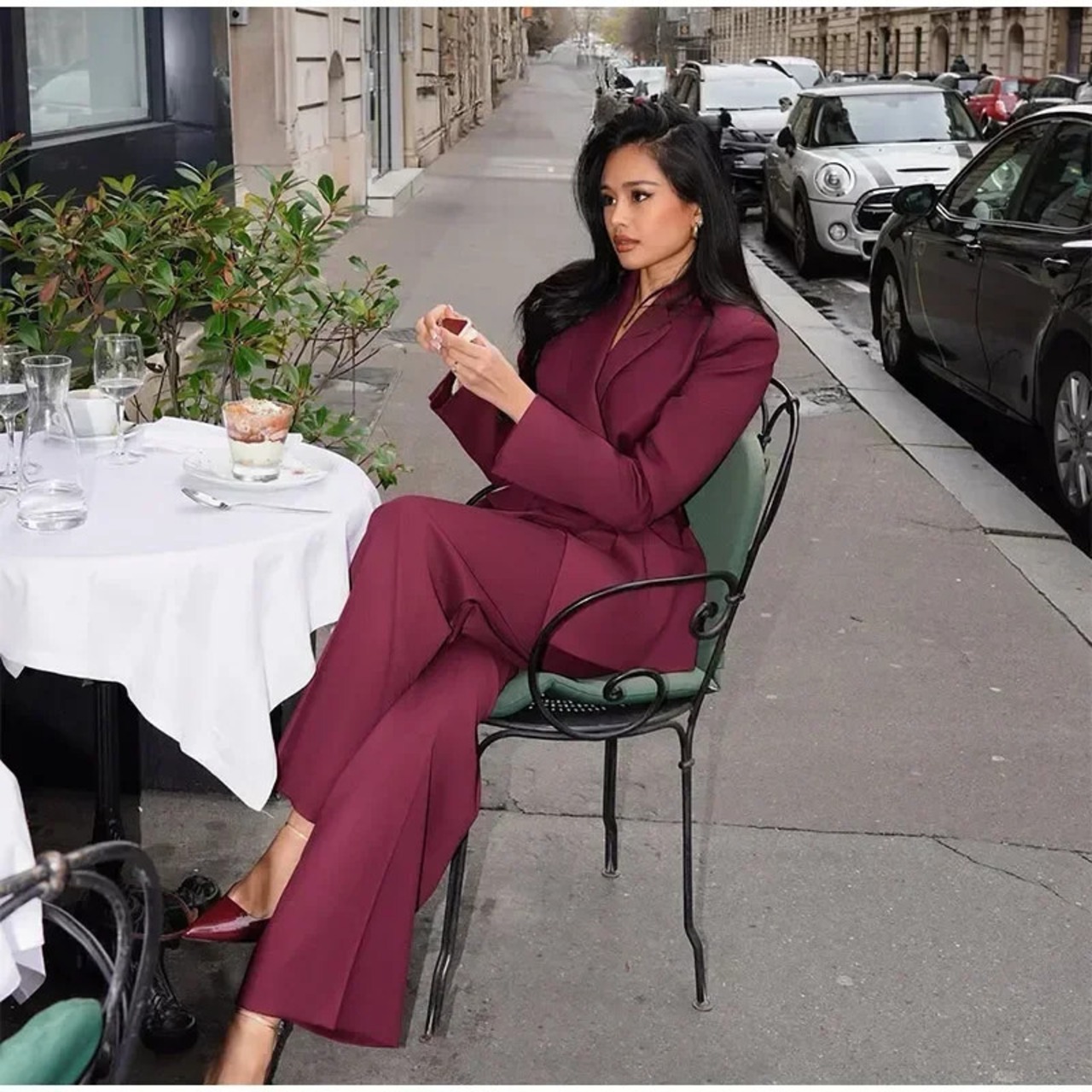 送料無料 e Frauen Weinrot Schulterpolster Anzug ジャケット セット Mode Schlanke Lange Hosen 2 Stück Anzüge 2025、Frühling Neue Frau Pendler Outwear AE6677600887062295028423 | 女性の為の通販サイト-fashion navi